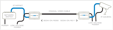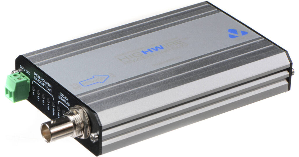 HIGHWIRE は、あらゆるアナログ ビデオ ケーブル(同軸ケーブル) を高速ネットワーク接続に変換します。 これにより、新しいLANケーブルを敷設することなく、アナログ カメラを IP カメラに置き換えることができ、システム コストを 30 ~ 40% 節約できます。